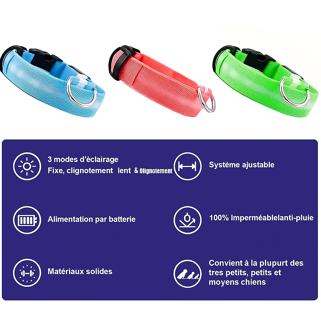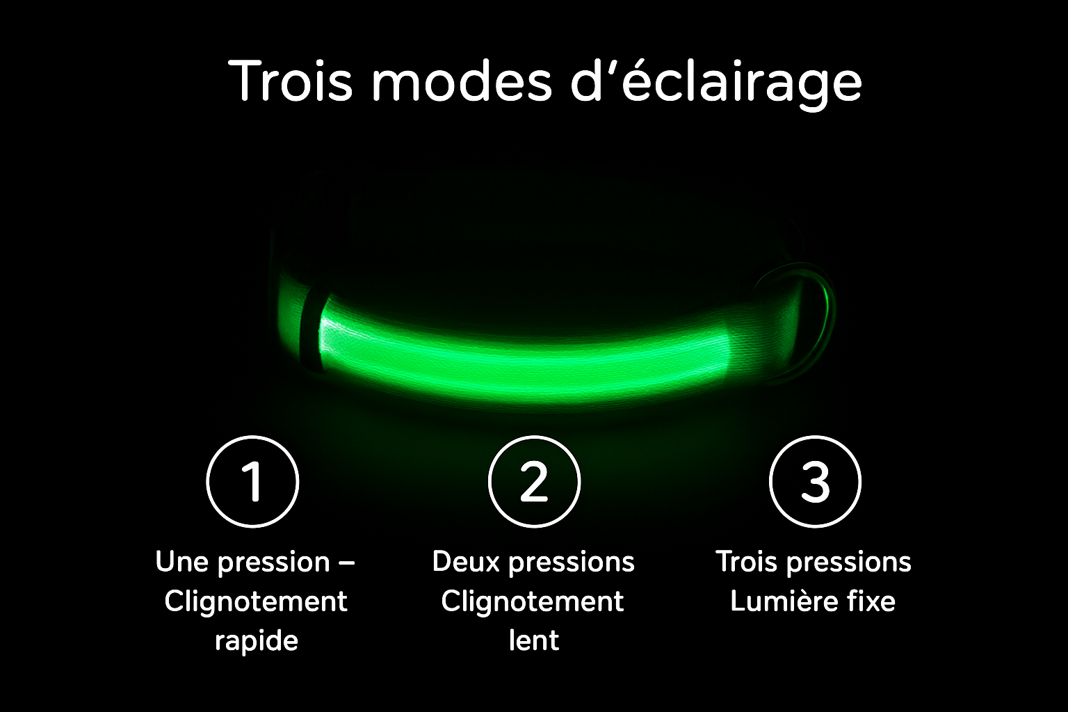 Assurez sa sécurité tout en ajoutant une touche de style grùce à notre Collier LED Réfléchissant !